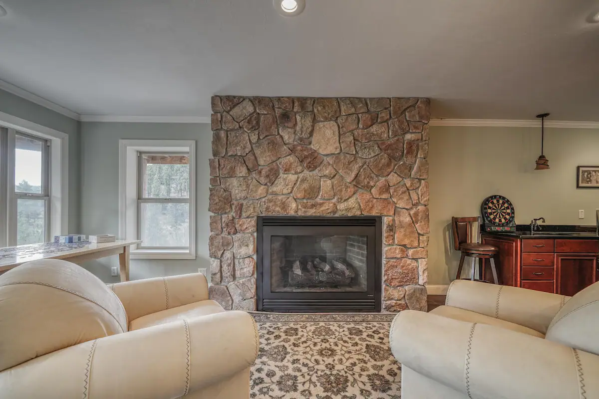 “Joni’s home is spectacular… simply marvelous. Nestled in the mountains on a lovely lot. Views are amazing. Elk in the meadows across the valley. Thoroughly enjoyed watching the winter snow come and go from our perfect perch next to the living room fireplace. It’s private and just magnificent. We arrived happy to find the home clean as could be. Beds and linens were luxurious and it appeared to have been recently renovated (still had that “new house” smell). The kitchen is complete. The furniture is nice…personally I loved the leather chair in the bedroom. Appliances (washer/dryer) all worked well. The fireplace was easy and safe to use. The basement is the perfect “man cave.” Big screen TV for movie night and a nice pool table. Satellite internet worked well. Joni and her husband: the perfect hosts!”